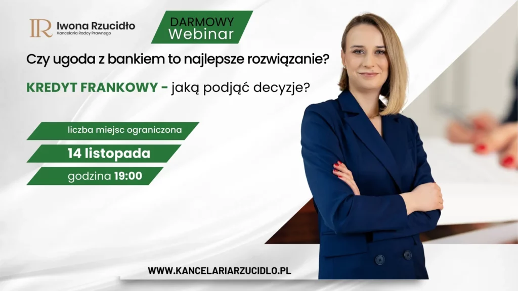 Webinar dla Frankowiczów: Ugoda z bankiem czy proces sądowy – jaką opcję wybrać? 14.11.2024 19:00-20:00